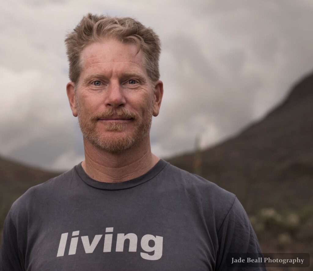 Desde 1993 opero una exitosa empresa dedicada al diseño regenerativo y permacultura, consultoría y educación, centrada en enfoques integrados y sostenibles para el diseño paisajístico, la planificación y la vida. Y como vivo en un entorno árido, la cosecha de agua ha sido durante mucho tiempo una de mis especialidades y pasiones. A través de mi negocio, he podido compartir esta pasión y muchas de las innovaciones divertidas y aventuras diarias que resultan de mi esfuerzo por vivir de forma más colaborativa y cómoda en el desierto de Sonora. En casa, mi hermano, su familia y yo cosechamos unos 378,000 litros (100,000 galones) de agua de lluvia al año en un terreno urbano de .05 hectáreas (1/8 de acre) y en el derecho de paso público contiguo. Esta agua cosechada se convierte en aires acondicionados vivos, que son árboles de sombra que brindan alimento, jardines abundantes y un paisaje saludable y dinámico que incorpora hábitats para la vida silvestre, belleza, plantas comestibles y medicinales, y mucho más. Los paisajes protectores pueden refrescar los edificios hasta 11 °C (20 °F), reducir las facturas de agua y electricidad, y requieren poco más que agua de lluvia para desarrollarse y crecer bien. Fuera de casa, he ayudado a otros a hacer lo mismo. Mis clientes han podido crear manantiales efímeros, elevar el nivel de agua de sus pozos, así como dar sombra y embellecer las calles de los vecindarios al cosechar el agua de escorrentía de las calles en los pozos en árboles nativos adyacentes.