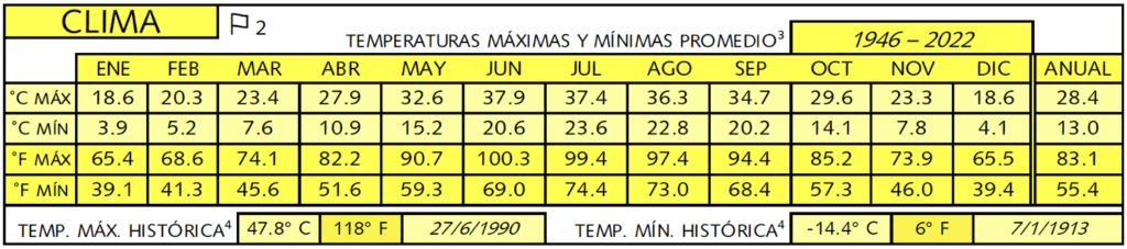 Se listan las temperaturas máximas y mínimas promedio para cada mes del año, junto con las temperaturas máximas y mínimas récord, para que puedas determinar:
