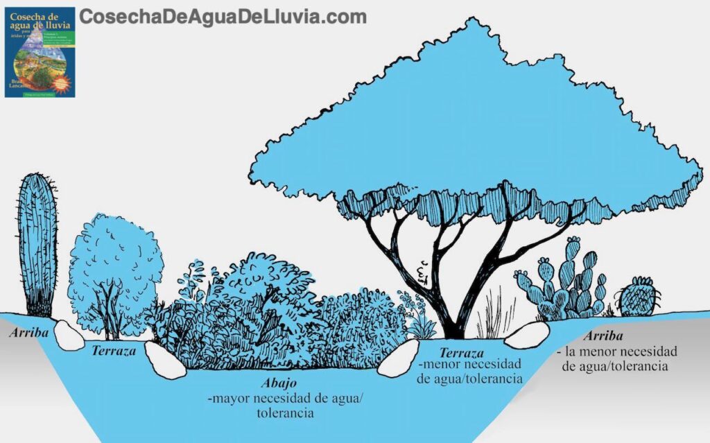Para ver más información sobre los distintos tipos de jardines de lluvia y cómo determinar la zona de siembra ideal para cada planta, consulta el libro Cosecha de agua de lluvia para zonas áridas y más allá, que acaba de publicarse a todo color.