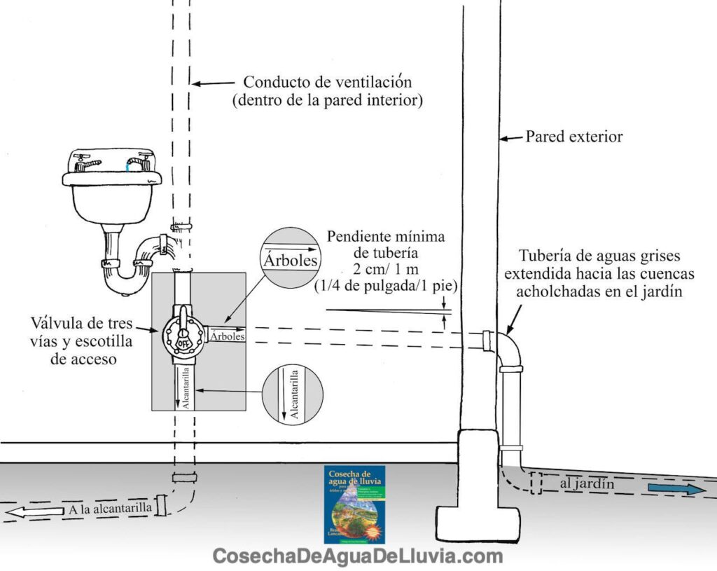 Aquí (disponible solo en inglés) puedes encontrar información adicional de Art Ludwig sobre registros de aguas grises.